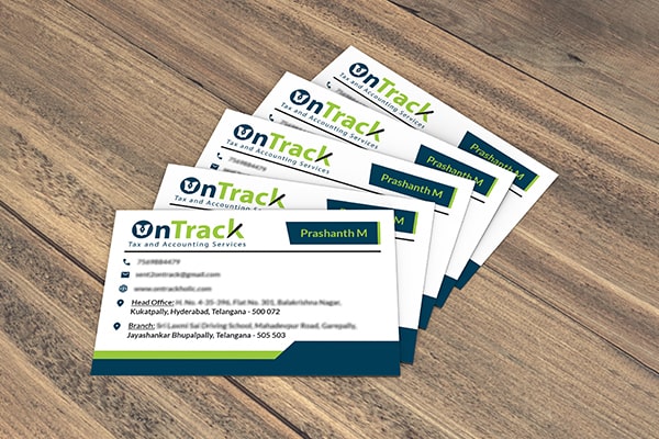 - We designed a sleek and professional visiting card for Ontrack Tax & Accounting Services client, incorporating their branding, contact information and services in a visually appealing way.