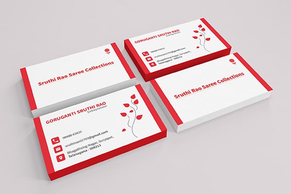- We designed a unique and memorable visiting card for my client, Sruthi Rao Saree Collections, incorporating their brand colors and logo into a visually appealing layout.